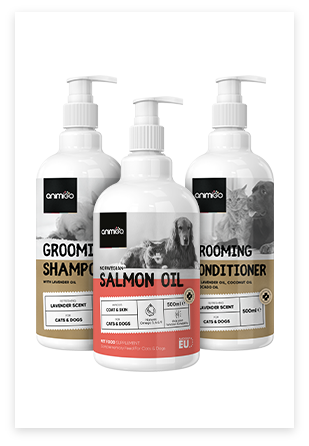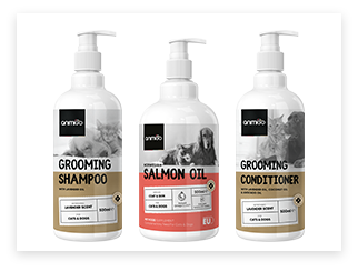 Med alt du skal bruge for at give din hund en smuk og sund pels: Hundebalsam, hundeshampoo og lakseolie