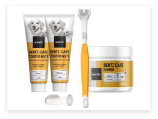 Komplet kombi-pakke med naturlig tandplejepulver, finger-tandbørste, 3-hovedet tandbørste samt spiselig og velsmagende tandpasta lavet af persille og eukalyptus.